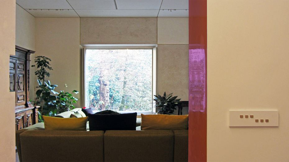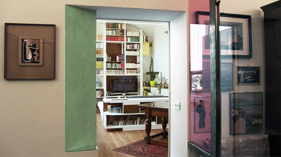 Un lavoro lungo e complesso, tuttora in corso, secondo un'idea (certamente condivisa con la Committenza) di graduale ma mai terminato processo di avvicinamento, aggiustamento, completamento. Il problema della casa è un problema innanzitutto di circolazione e poi di relazione tra le parti e infine di spazio; il problema è anche di dettaglio, di punteggiatura, di accenti; e poi di operazioni matematiche: sottrazione, divisione, addizione e moltiplicazione. Il problema è quello di costuire una narrazione, ogni volta rinnovata occasione di osservazione del mondo da un luogo privilegiato. Abbiamo disegnato tutto: lo spazio, gli arredi, ogni elemento di dettaglio, anche gli interruttori. Il Committente ancora ci manifesta contettezza e talvolta ci fa avere salami pregiati da gustare.